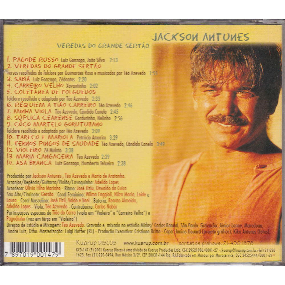 Artista: Jackson Antunes | Gravadora / Distribuidora: Kuarup Discos | Ano: 2001 | Label: KCD147 | Código de barras: 7897019001479