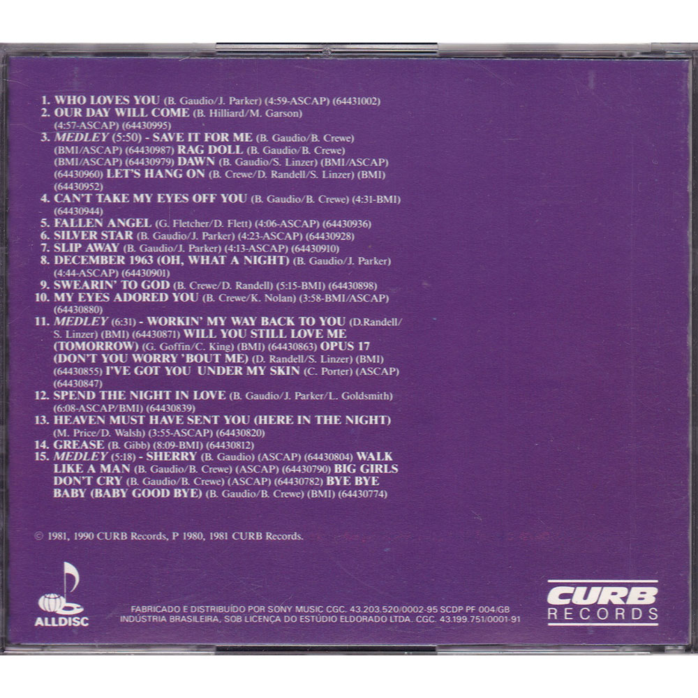 Artista: Frankie Valli, The Four Seasons | Gravadora / Distribuidora: Curb Records | Ano: 1990 | Label: 584.018