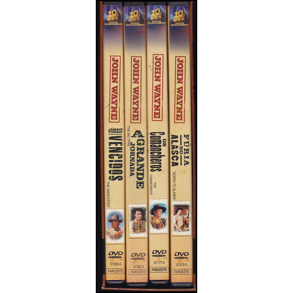 Original | Box com 4 DVDs | Exemplar de colecionador: sem uso e em perfeito estado | Filmes: 1- A Grande Jornada, 2- Os Comancheros, 3- Fúria no Alasca, 4- Jamais Foram Vencidos | Colorido por De Luxe